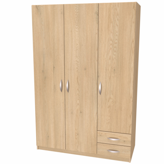 Prostorná, klasická skříň pro všechny generace. Vhodná do menších místností. Vyrobeno z lamina o síle 18mm. Výběr akčních dekorů. Kvalitní kování a spojovací materiál je bez použití plastových součástek,vyjma ochranných krytek. Lze osadit zrcadlem.
