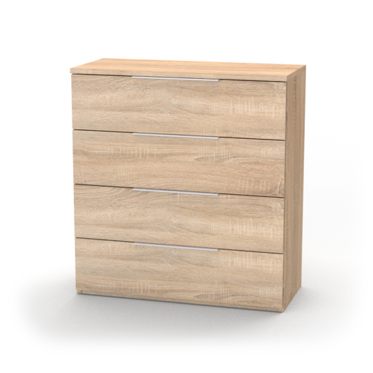 Komoda VARIO 4 je praktickým a funkčním nábytkem, který může být využit v různých místnostech domu jako přehledný úložný prostor. Díky čistému minimalistickému designu, a velkému výběru dekorů umožňující snadnou kombinaci s různými designovými prvky či barvami, dotvoří prakticky jakýkoliv interiér. Na výběr je ze třinácti akčních dekorů, za použití kvalitního lamina o tloušťce 18 mm. Kuličkový plnovýsuv umožňuje hladký pohyb zásuvek. Komodu můžete otevírat a zavírat bez velkého úsilí po celé ploše zásuvky, což zaručuje jednoduchý přístup k veškerému obsahu šuplíků. Díky kvalitnímu materiálu jsou kuličkové plnovýsuvy odolné vůči opotřebení a vydrží i přes značné zatížení mnoho let.