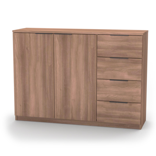 NÁBYTEK MIKULÍK s.r.o. VARIO 5 - komoda, 120x86.5cm Dekor: olše, Úchytka: Černá, olše, Černá