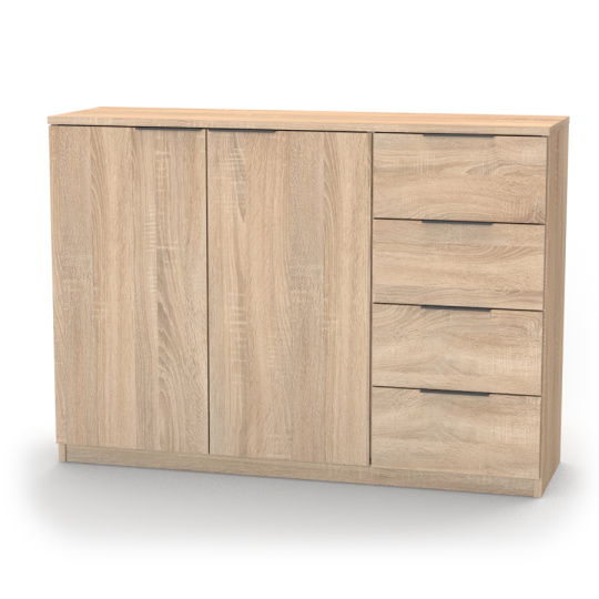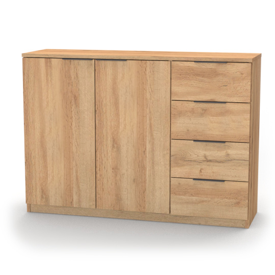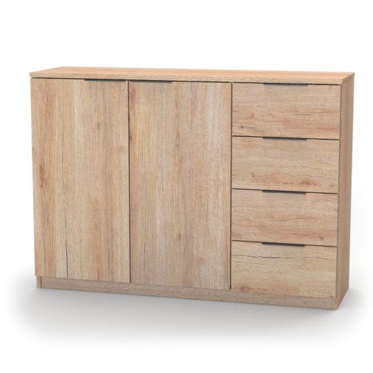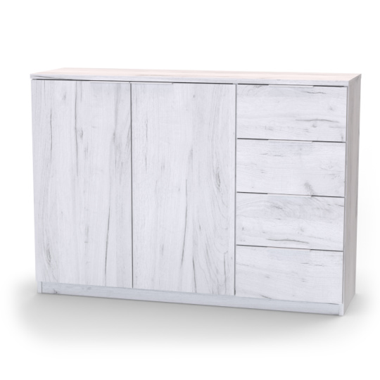 Komoda VARIO 5 je praktickým a funkčním nábytkem, který může být využit v různých místnostech domu jako přehledný úložný prostor. Díky čistému minimalistickému designu, a velkému výběru dekorů umožňující snadnou kombinaci s různými designovými prvky či barvami, dotvoří prakticky jakýkoliv interiér. Na výběr je ze třinácti akčních dekorů, za použití kvalitního lamina o tloušťce 18 mm. Kuličkový plnovýsuv umožňuje hladký pohyb zásuvek. Komodu můžete otevírat a zavírat bez velkého úsilí po celé ploše zásuvky, což zaručuje jednoduchý přístup k veškerému obsahu šuplíků. Díky kvalitnímu materiálu jsou kuličkové plnovýsuvy odolné vůči opotřebení a vydrží i přes značné zatížení mnoho let.