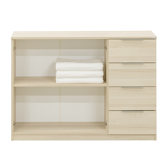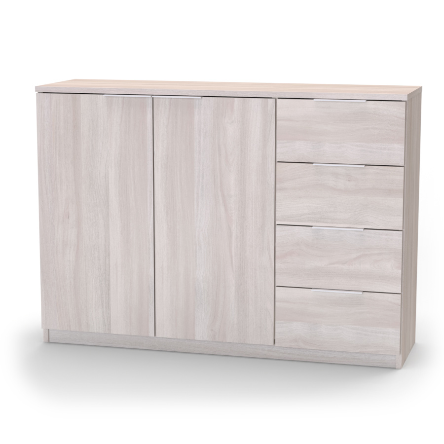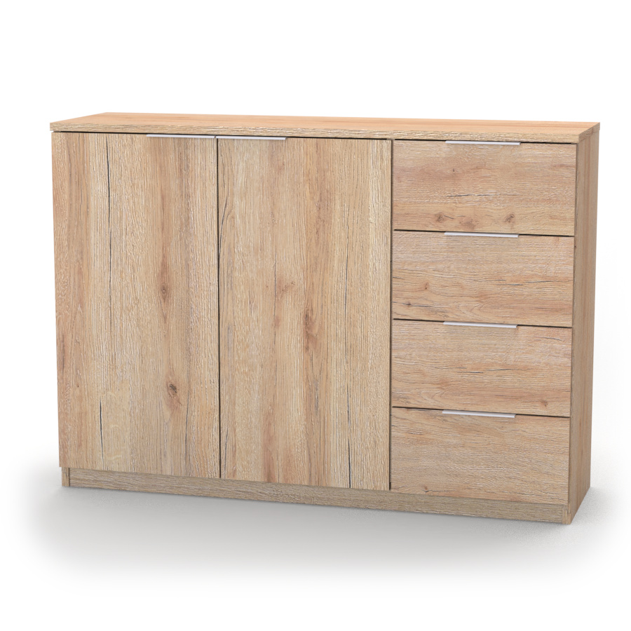 Komoda VARIO 5 je praktickým a funkčním nábytkem, který může být využit v různých místnostech domu jako přehledný úložný prostor. Díky čistému minimalistickému designu, a velkému výběru dekorů umožňující snadnou kombinaci s různými designovými prvky či barvami, dotvoří prakticky jakýkoliv interiér. Na výběr je ze třinácti akčních dekorů, za použití kvalitního lamina o tloušťce 18 mm. Kuličkový plnovýsuv umožňuje hladký pohyb zásuvek. Komodu můžete otevírat a zavírat bez velkého úsilí po celé ploše zásuvky, což zaručuje jednoduchý přístup k veškerému obsahu šuplíků. Díky kvalitnímu materiálu jsou kuličkové plnovýsuvy odolné vůči opotřebení a vydrží i přes značné zatížení mnoho let.