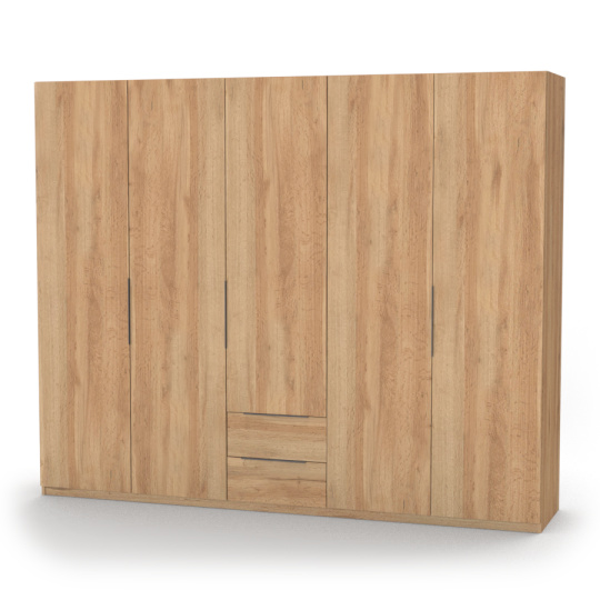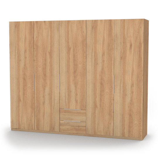 VARIO XXL je prostorná skříň, která nabízí dvě varianty vnitřního uspořádání, na niž je připravena z výroby a volíte si je při montáži. Kvalitní zásuvky, úchytky a pojezdy jsou přizpůsobeny častému otevírání a v celkovém provedení se tak stává skříň velmi dobrou volbou. Na výběr je z třinácti akčních dekorů a použití kvalitního lamina v tloušťce 18mm. Skříň Vario vizuálně ladí s postelí a dalším nábytkem ze stejné řady, lehce se harmonicky začlení do celkového vzhledu místnosti. Dveře skříně lze osadit zrcadlem, což může opticky zvětšit místnost a zlepšit osvětlení tím, že odráží světlo.