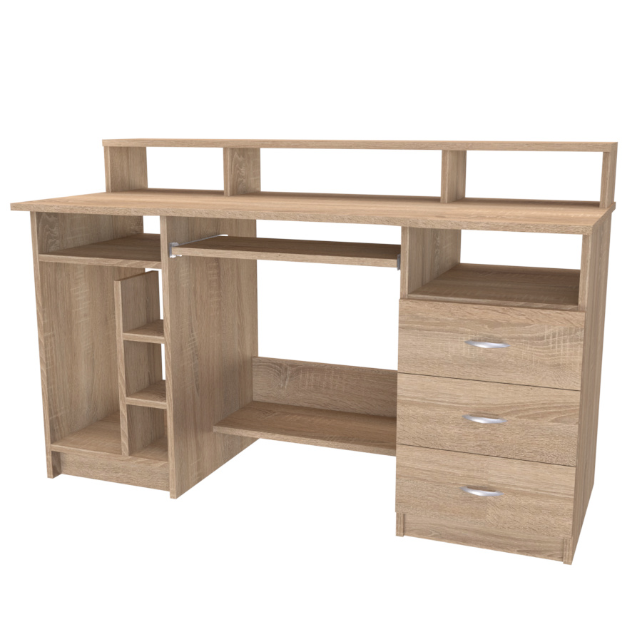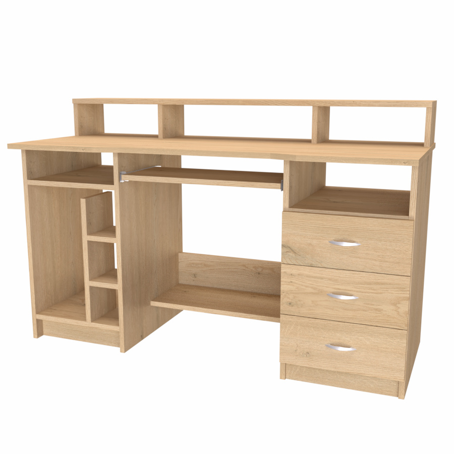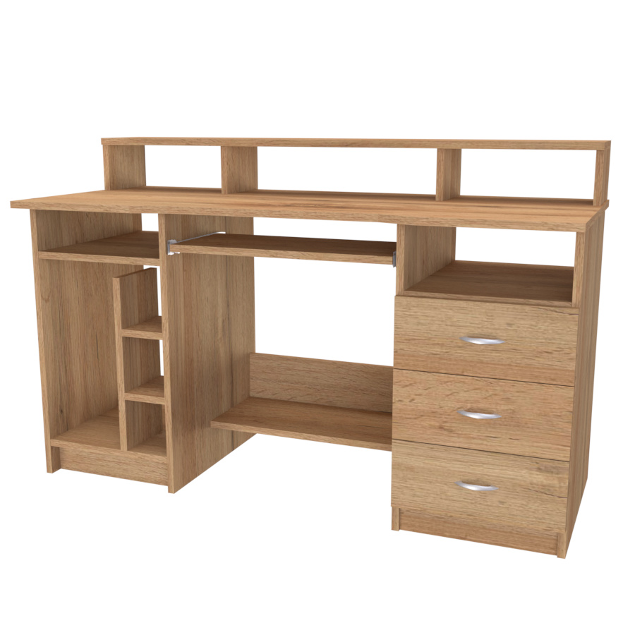 Psací stůl WEST se může chlubit velkou pracovní plochou i policí, nejen pro monitor. Počítačový a psací stůl WES (pravý) má velký úložný prostor, který využijete i pro tiskárny. Stůl má výsuvnou polici i ve spodní části pro tiskárnu nebo scanner. Vyrobeno z lamina o síle 18mm. Výběr akčních dekorů. Kvalitní kování a spojovací materiál je bez použití plastových součástek, vyjma ochranných krytek. Hranění i z nepohledových stran.