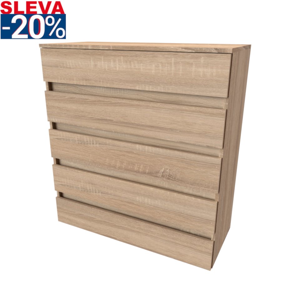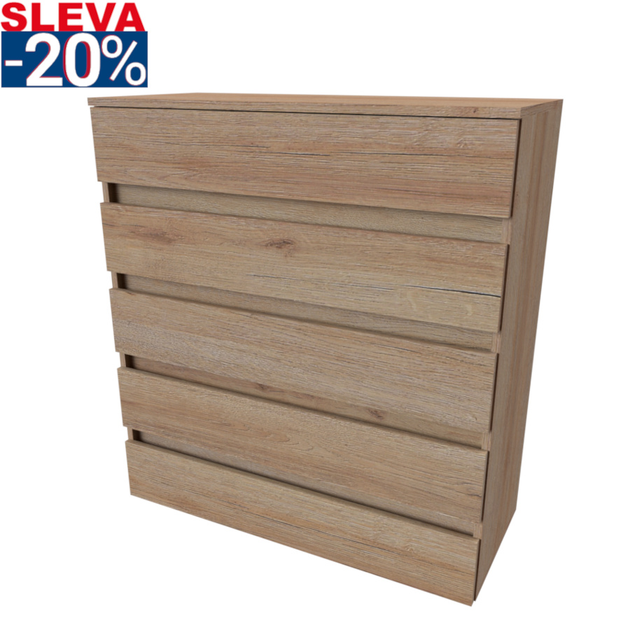 Moderní bezúchytová komoda v atraktivním designu, jenž najde své využití v jakékoli místnosti. Vyrobeno z lamina o síle 18mm. Kvalitní zásuvky, úchytky a pojezdy jsou přizpůsobeny častému otevírání. Výběr akčních dekorů. Kvalitní kování a spojovací materiál je bez použití plastových součástek,vyjma ochranných krytek.