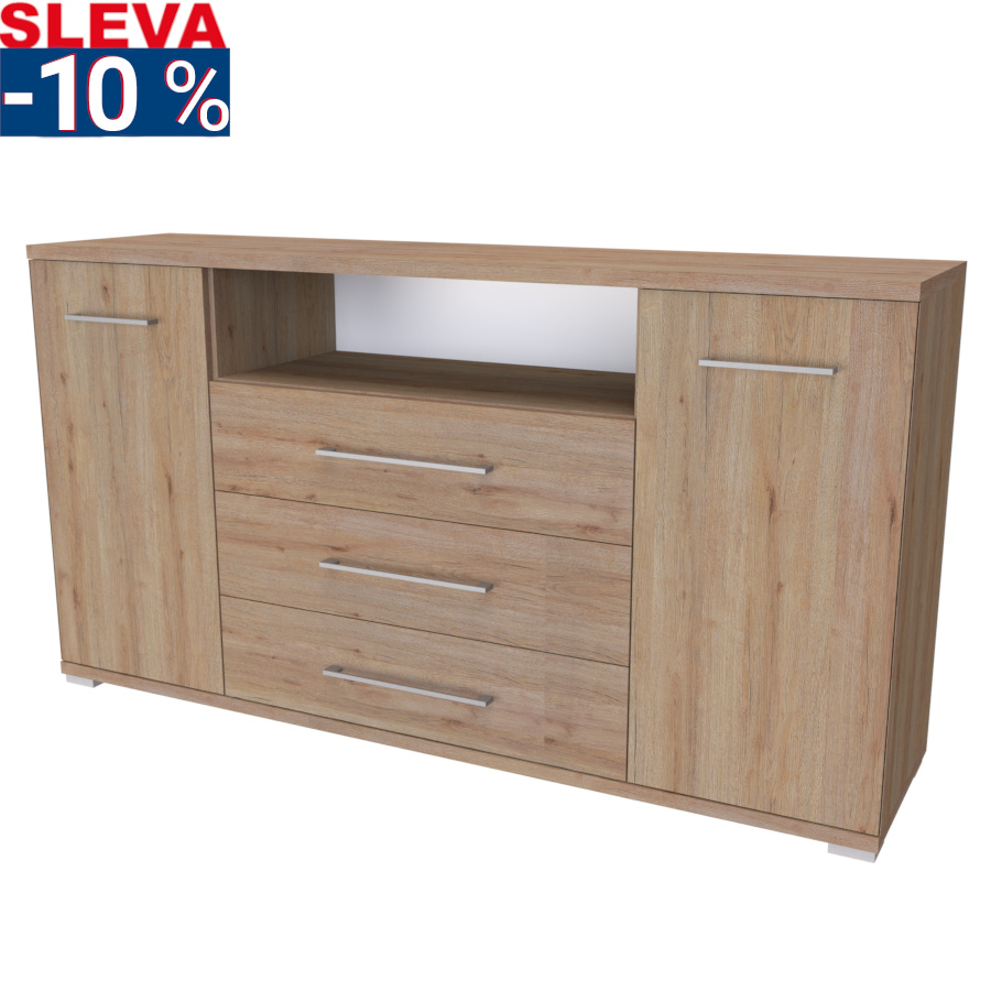 NÁBYTEK MIKULÍK s.r.o. AIDA LN - komoda se skříňkami, zásuvkami a poličkou, 160x86cm Dekor: olše