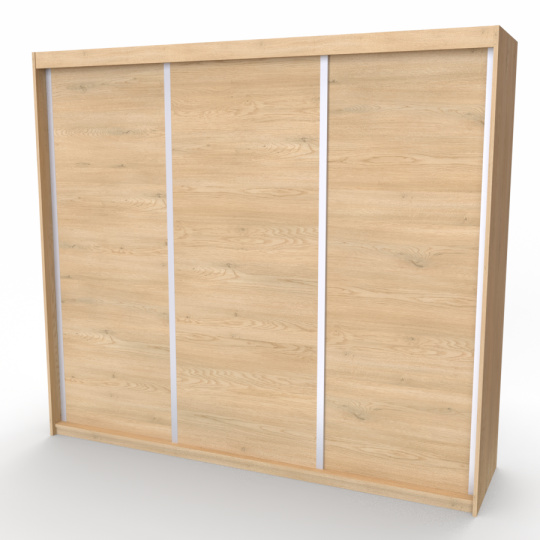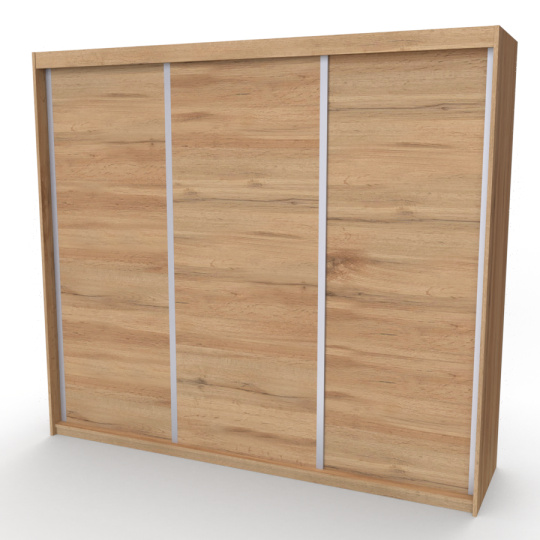 Vhodné do menších místností, kde rozhoduje každý centimetr Velká šatní skříň MAXIM 3 je vhodná do menších místností, kde rozhoduje každý centimetr. Moderní posuvné dveře vytvoří větší volný prostor kolem této skříně. Vyrobeno z lamina o síle 18mm. Výběr akčních dekorů. Kvalitní kování a spojovací materiál je bez použití plastových součástek, vyjma ochranných krytek. Dvě varianty vnitřního uspořádání. Skříň je z výroby připravena na obě varianty, rozložení si volíte až při montáži. Posuvné dveře s tlumením a dotahem. Dveře se skládají ze tří dílů, což nabízí možnost kombinace dekorů. Lze také osadit zrcadlem.