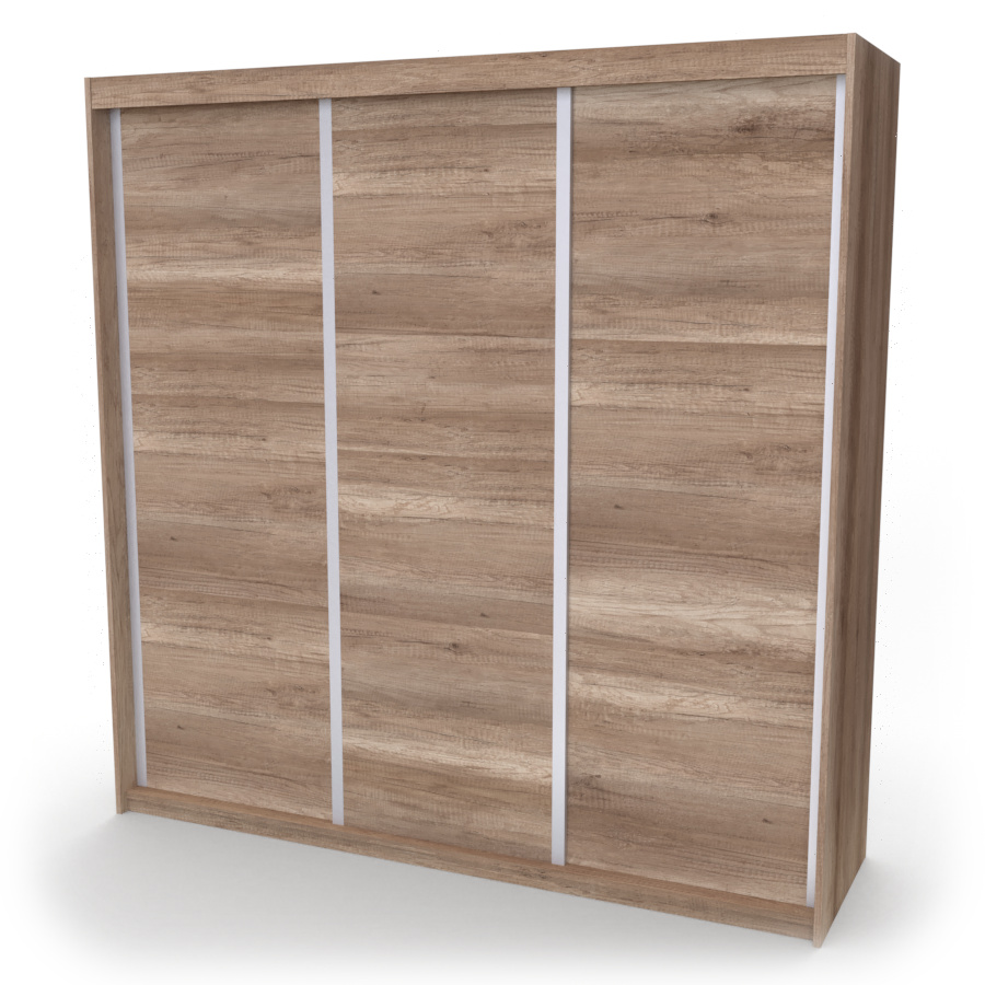 Vhodné do menších místností, kde rozhoduje každý centimetr Velká šatní skříň MAXIM 3 je vhodná do menších místností, kde rozhoduje každý centimetr. Moderní posuvné dveře vytvoří větší volný prostor kolem této skříně. Vyrobeno z lamina o síle 18mm. Výběr akčních dekorů. Kvalitní kování a spojovací materiál je bez použití plastových součástek, vyjma ochranných krytek. Dvě varianty vnitřního uspořádání. Skříň je z výroby připravena na obě varianty, rozložení si volíte až při montáži. Posuvné dveře s tlumením a dotahem. Dveře se skládají ze tří dílů, což nabízí možnost kombinace dekorů. Lze také osadit zrcadlem.