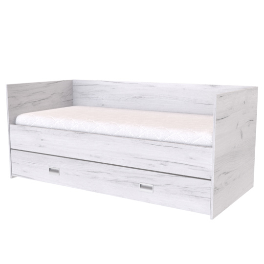 Elegantní řešení pro přespání kamaráda Vašeho potomka či odpočinková plocha pro Vás při čtení pohádek na dobrou noc. Ideální postel do dětského pokoje. Zvýšené čelo chrání a izoluje prostor pro odpočinek. Vyrobeno z lamina o síle 18 mm. Výběr akčních dekorů. Kvalitní kování a spojovací materiál je bez použití plastových součástek, vyjma ochranných krytek. Varianta s přistýlkou nebo s úložným prostorem. Zvýšená lehací plocha 59 cm (včetně matrace o výšce 16 cm). Zátěž roštu lůžka do 120 kg, zátěž roštu přistýlky do 100 kg. Rozměr matrace v přistýlce 190 x 80 cm, maximální výška 16 cm. Cena s laťovými rošty bez matrací.