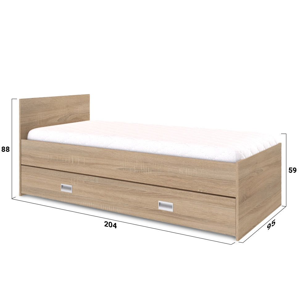 Nábytek Mikulík-výroba:Kratochvíl Martin DUO - postel s úložným prostorem / přistýlkou 90x200cm, zvýšené boční čelo (včetně roštu) Dekor: olše, Varianta: S úložným prostorem, Typ: Levé, olše, S úložným prostorem, Levé