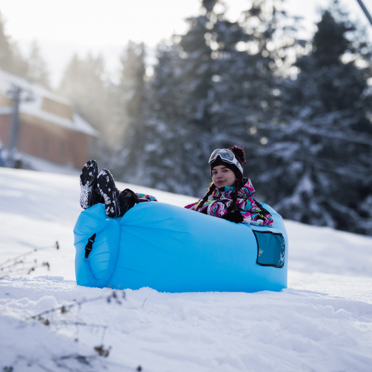 Materiál: nylon Barva: modrá Nenafúkaný stav (ŠxD): 50x70 cm Nafoukaný stav: 70x180 / 190/240 cm Samotnou velikost nafouknutého vaku si víš regulovat Hmotnost: pouze 0,80 kg Nosnost: 200 kg nafukovací Sedací vak Jedna kapsa se dvěma přihrádkami S transportním vakem Snadný přenos na rameni S popruhem přes rameno Vhodný na všechny povrchy Sníh, voda, tráva, písek voděodolný nepropustný materiál Omyvatelný mýdlovou vodou Vhodný do interiéru i exteriéru Vhodný do domácnosti, i do kanceláře na příležitostný relax Vhodný na zahradu, na terasu Během rodinné dovolené, během výletů Ideální během turistiky Vhodný i na vysokohorskou turistiku Během kempu, stanování na piknik během festivalů Na lenošení na pláži Na koupaliště, přehradu, k jezeru K vašim hobby: během rybolovu, houbaření apod. Na svah: sáňkovačka, bobovačka, běžky, lyže jednoduchá obsluha Snadná údržba Vzduchový vak Snadné a rychlé naplnění za pár vteřin Bezpumpové nafukování Možnost regulace objemu podle potřeby flexibilní použití Dodávané v demontu