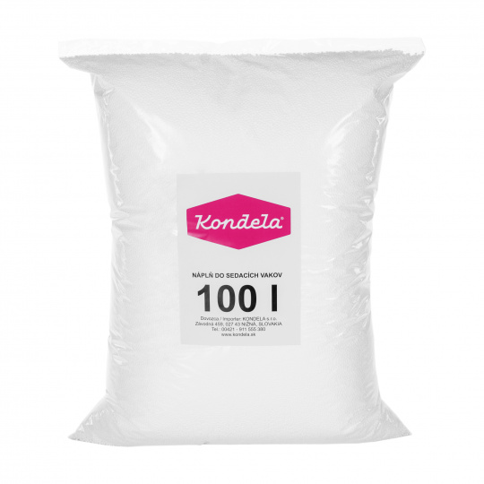Materiál: polystyren Barva: bílá Objem: 100 l zdraví nezávadné Vhodné i pro alergiky a děti pravidelný tvar vzdušnost lehký materiál Jednoduché doplňování Regulování tuhosti vaku Dodávané v pytli