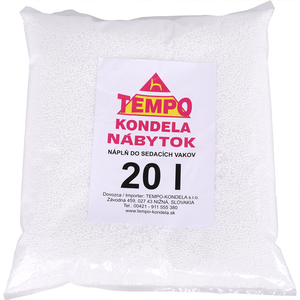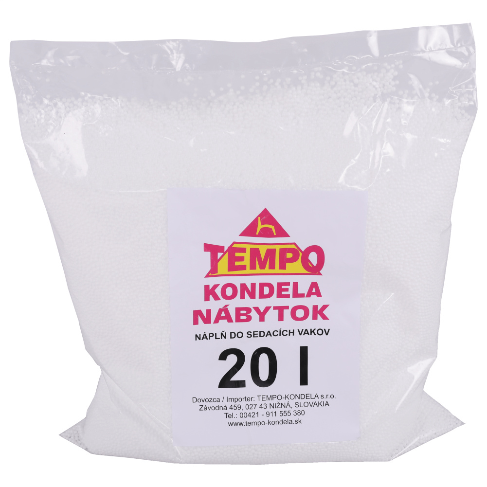 Materiál: polystyren Barva: bílá Objem: 20 l zdraví nezávadné Vhodné i pro alergiky a děti pravidelný tvar vzdušnost lehký materiál Jednoduché doplňování Regulování tuhosti vaku Dodávané v pytli