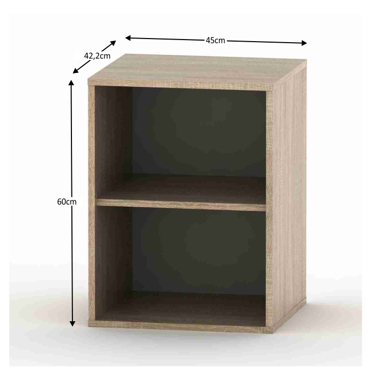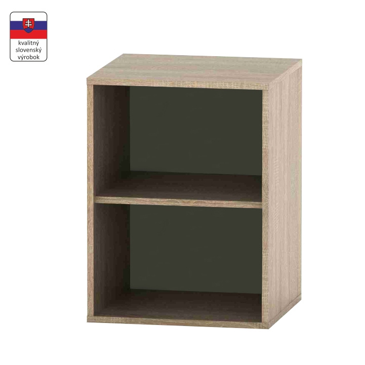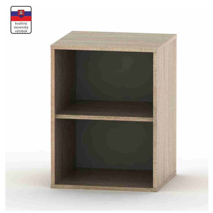 Nástavec na regál BETTY 4 s policí Materiál: DTD laminovaná Barva: dub sonoma Rozměry (ŠxHxV): 45x42,2x60 cm. Tloušťka materiálu korpus: 16 mm Slovenský výrobek. Dodávané v demontu.