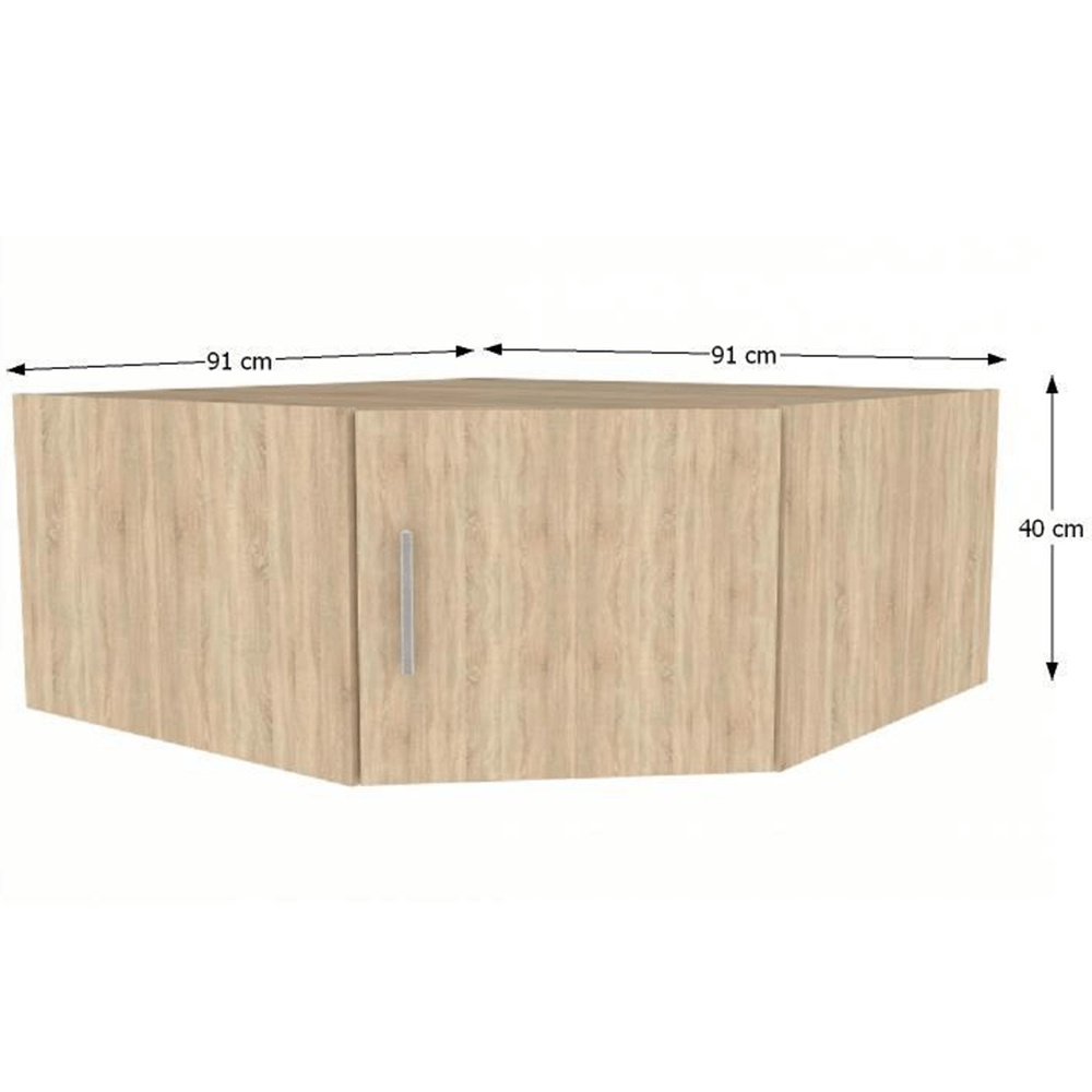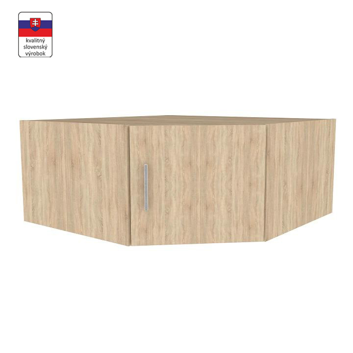 Nástavec na skříň INVITA TYP 8 Materiál: DTD laminovaná Provedení: dub sonoma Rozměry (ŠxHxV): 91x91x40 cm Tloušťka materiálu: 16 mm jednodveřová rohová Kvalitní slovenský výrobek Dodávané v demontu