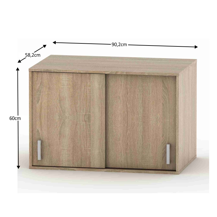 Nástavec na skříň BETTY 4 s posuvnými dveřmi. Materiál: DTD laminovaná Barva: dub sonoma Rozměry (ŠxHxV): 90,2x58,2x60 cm. Tloušťka lamina: 1,6 cm Slovenský výrobek. Dodávané v demontu.