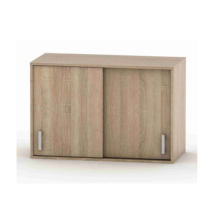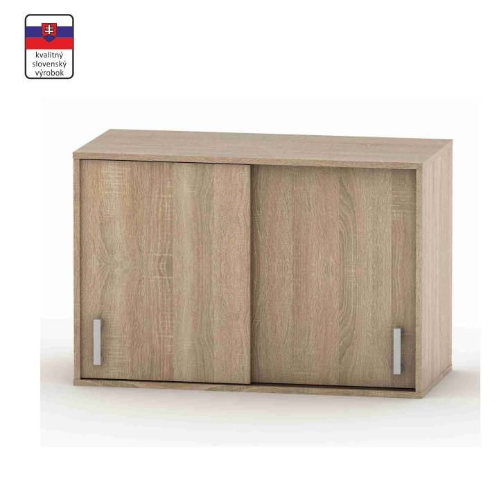 Nástavec na skříň BETTY 4 s posuvnými dveřmi. Materiál: DTD laminovaná Barva: dub sonoma Rozměry (ŠxHxV): 90x42,2x60 cm Tloušťka lamina: 1,6 cm Slovenský výrobek. Dodávané v demontu.