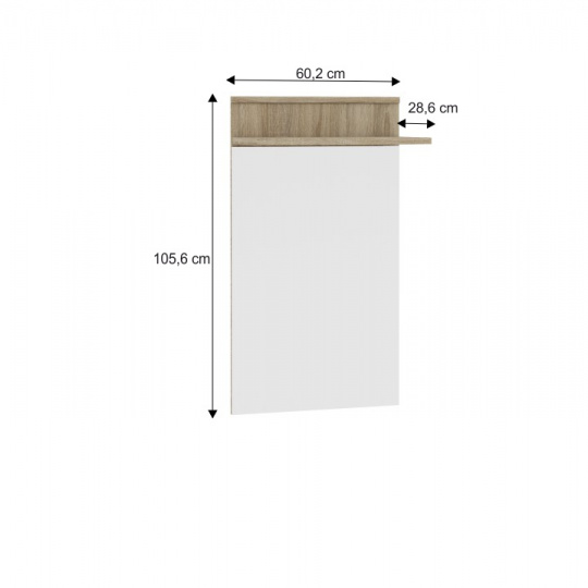 Nástavec se zrcadlem, Typ E-5, komponent z předsíňové sestavy, Materiál DTD laminovaná, Barevné provedení: dub sonoma. Rozměry: (ŠxVxH): 60,2x106,5x28 cm. Tloušťka materiálu: 16/22 mm