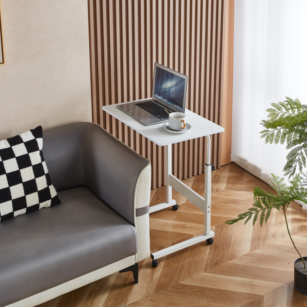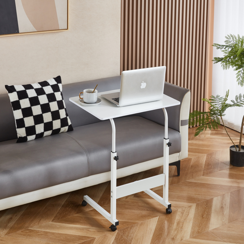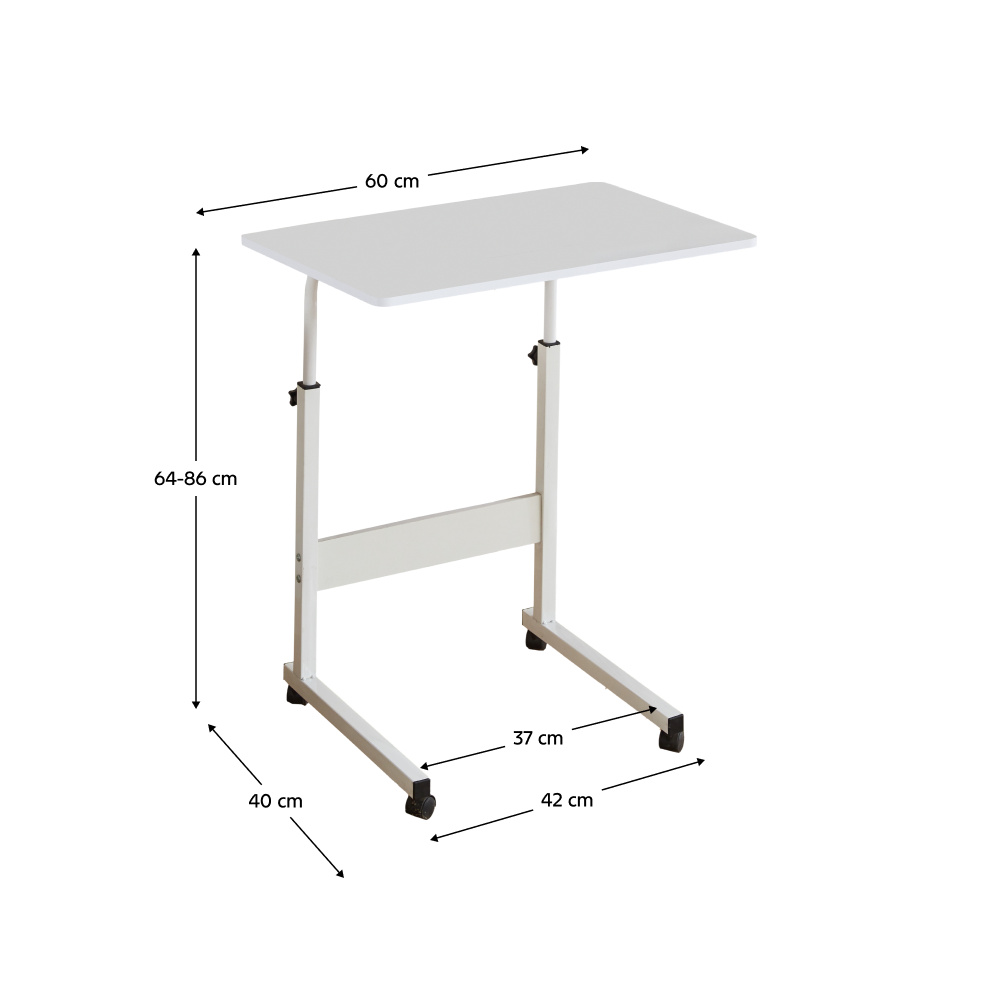 Materiál: foliovaná MDF/kov Barva: bílá Rozměry (ŠxHxV): 60x40x64-86 cm Tloušťka materiálu: 1,2 cm Nosnost: 10 kg Hmotnost: 3,2 kg Pojízdný Na kolečkách Se dvěma brzdami Nastavitelná výška stolu Mobilní Víceúčelový Moderní Praktický Dodáván v demontu