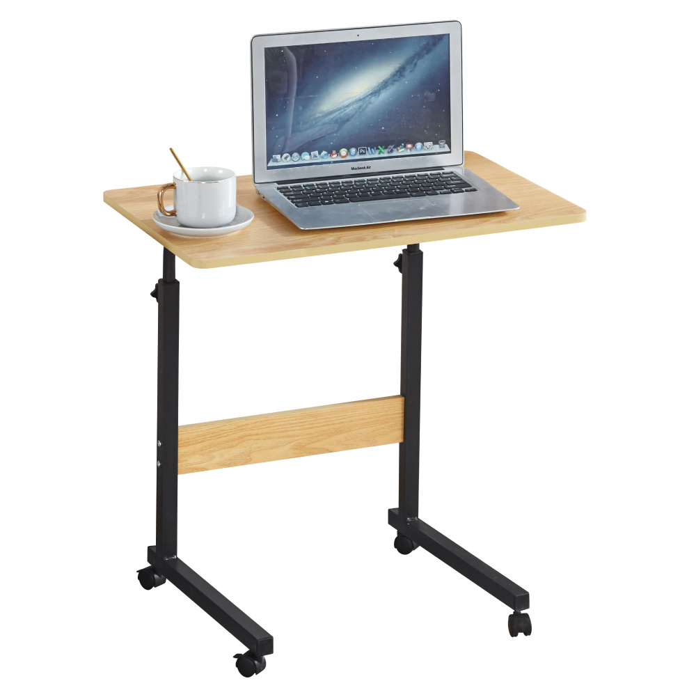 Nastavitelný PC stůl s kolečky, dub/černá, JUSTUS