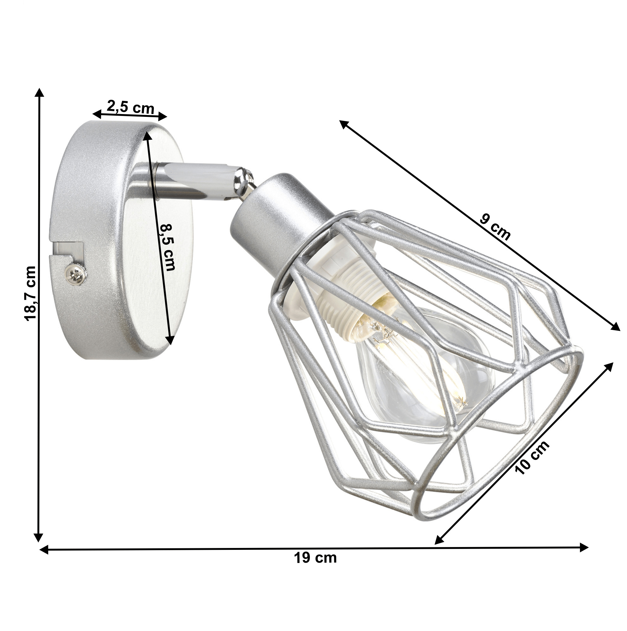 Materiál: kov Barva: stříbrná Celkové rozměry (ŠxHxV): 19x10x18,7 cm Rozměry podstavce (ŠxHxV): 8,5x8,5x2,5 cm Rozměry stínítka (ŠxHxV): 10x10x9 cm Doporučený typ žárovky (závit): E14 Maximální příkon žárovky: 40 W Napětí: 220-240 V Nástěnná lampa Ohebná část ramene Moderní design Dodávána bez žárovky Vhodná do interiéru a krytých teras Dodáváno v demontu