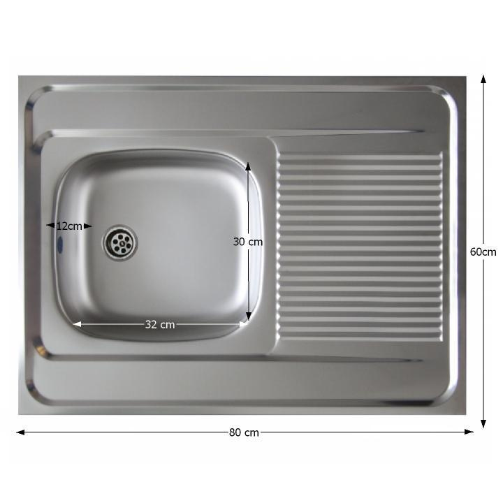 Materiál: nerez Vnější rozměry (ŠxH): 80x60 cm Vnitřní rozměry (ŠxHxV): 32x30x12 cm Tloušťka: 0,8 mm Univerzální Hladký Obdélníkový Hmotnost dřezu: 4 kg V ceně: úchytky a sifon