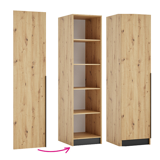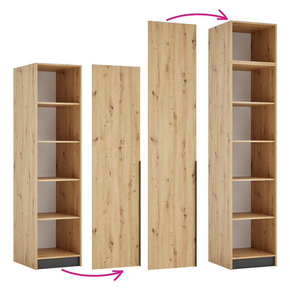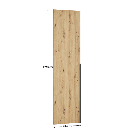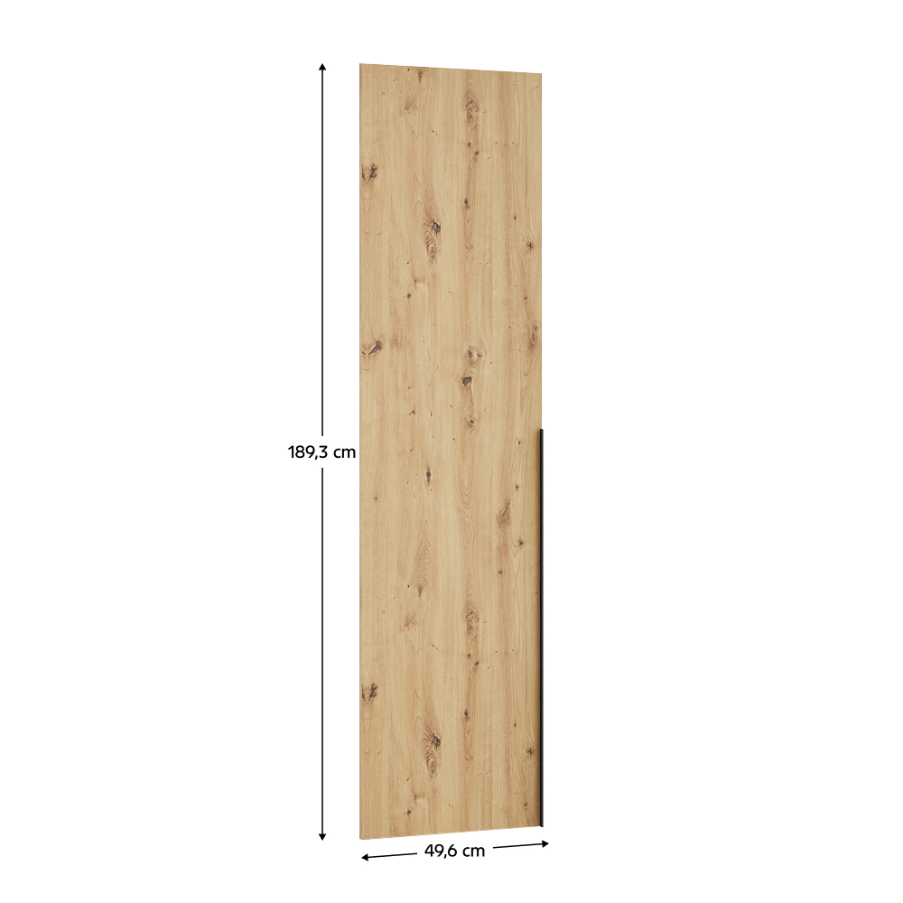 Materiál: laminovaná DTD/ABS hrany Barva: dub artisan Rozměry (ŠxHxV): 49,6x1,6x189,3 cm Tloušťka materiálu DTD: 1,6 cm Tloušťka materiálu ABS: 0,2 cm Univerzální dvířka Tichý domek Panty S úchytkou Materiál úchytky: plast Barva úchytky: černá Možnost kombinovat s odstínem kašmír Vhodné ke korpusu KREO 50, 100, 150 Dodáváno v demontu