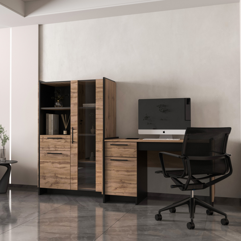 Materiál: DTD laminovaná/ABS hrany/sklo Barva: dub wotan/černá Rozměry (ŠxHxV): 96x45x150 cm Tloušťka materiálu: 1,6 cm Kovové úchytky Barva úchytek: černá Obsahuje dvířka se sklem Skříňka s dvířky Policová Nosnost police: 5 kg Otevřený úložný prostor Šuplík Nosnost šuplíku: 5 kg Výška šuplíku: 20 cm Dvojitá laminovaná DTD Plastové nožičky Bez LED osvětlení Možnost dokoupení LED osvětlení Moderní design Doporučujeme připevnit ke stěně Dodáváno v demontu