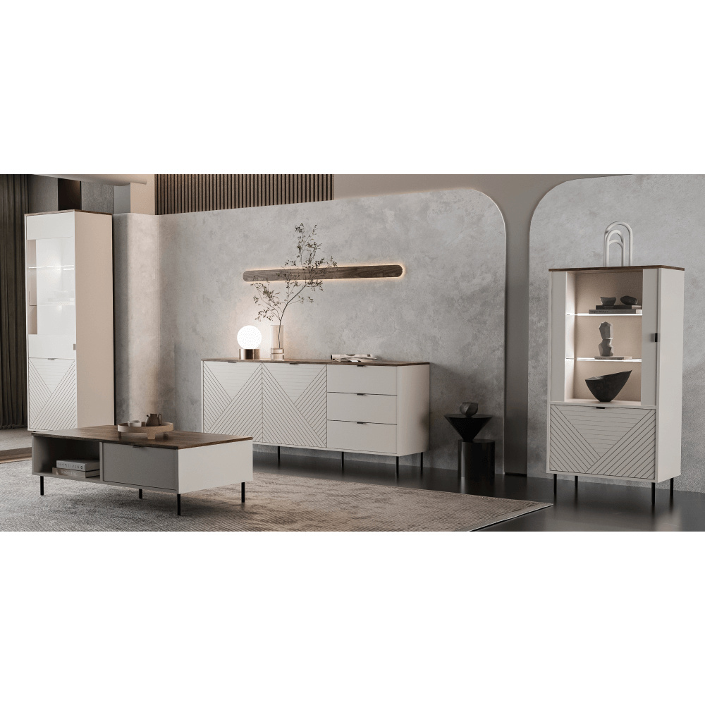 Nízká vitrína, kašmír/dub castello, EYCO 1D1W