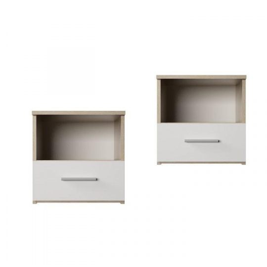 Noční stolek, 2 ks, dub sonoma / bílá, GABRIELA