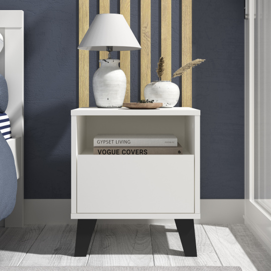 Noční stolek, bílá, BOGAN NEW 1S