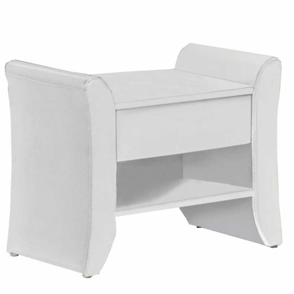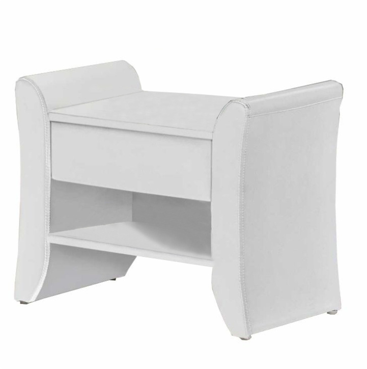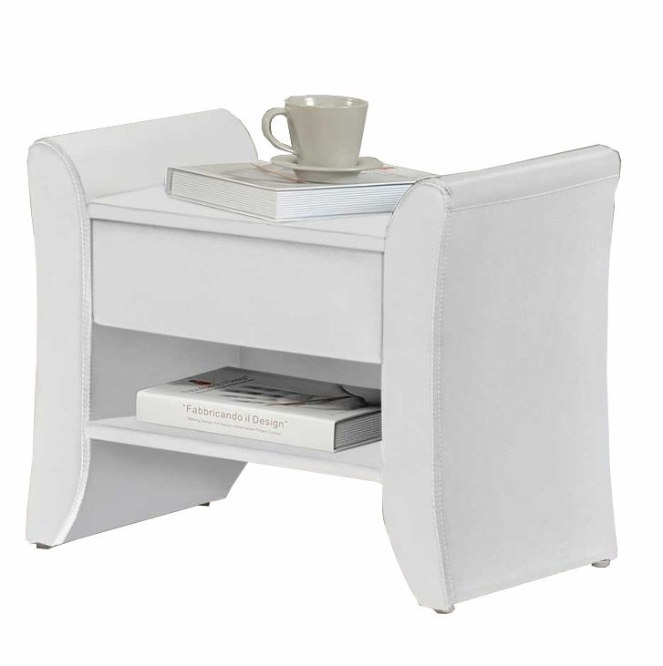 Celočalouněný noční stolek BOLTON se šuplíkem a poličkou, v provedení bílá ekokůže. Rozměry (ŠxHxV): 47x44x37 cm dodávané smontované