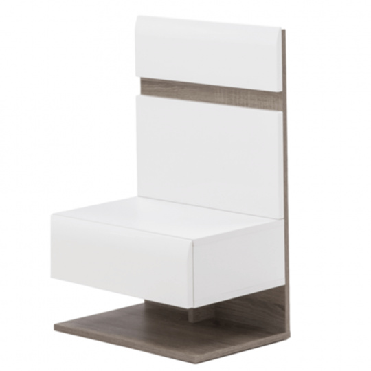 Noční stolek, bílá extra vysoký lesk HG / dub sonoma tmavý truflový, LYNATET TYP 95