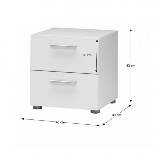 Noční stolek PEPE 70070 Materiál: DTD fóliovaná Barva: bílá Rozměry (ŠxHxV): 40x40x43 cm Tloušťka materiálu korpus: 15 mm Tloušťka materiálu vrchní plát: 18 mm Dodávané v demontu.