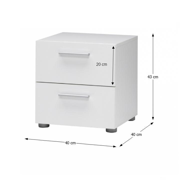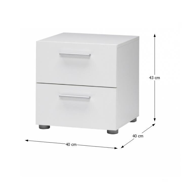 Noční stolek PEPE 70070 Materiál: DTD fóliovaná Barva: bílá Rozměry (ŠxHxV): 40x40x43 cm Tloušťka materiálu korpus: 15 mm Tloušťka materiálu vrchní plát: 18 mm Dodávané v demontu.