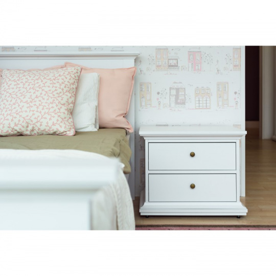 Noční stolek PARIS 70301 Materiál: DTD laminovaná/lakovaná MDF Barevné provedení: bílá Rozměry (ŠxHxV): 62,6x40x49,3 cm Tloušťka materiálu: 18 mm Dodáváno v demontu.
