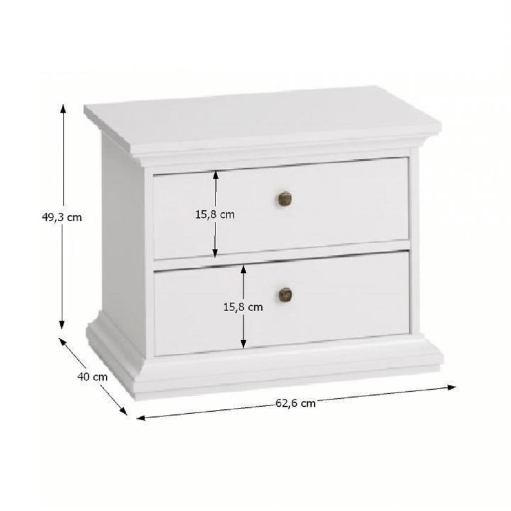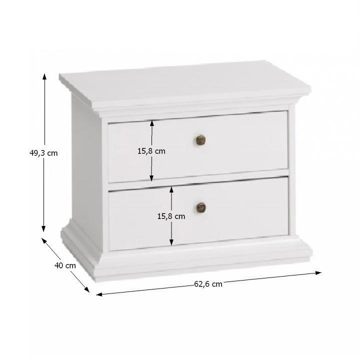 Noční stolek PARIS 70301 Materiál: DTD laminovaná/lakovaná MDF Barevné provedení: bílá Rozměry (ŠxHxV): 62,6x40x49,3 cm Tloušťka materiálu: 18 mm Dodáváno v demontu.