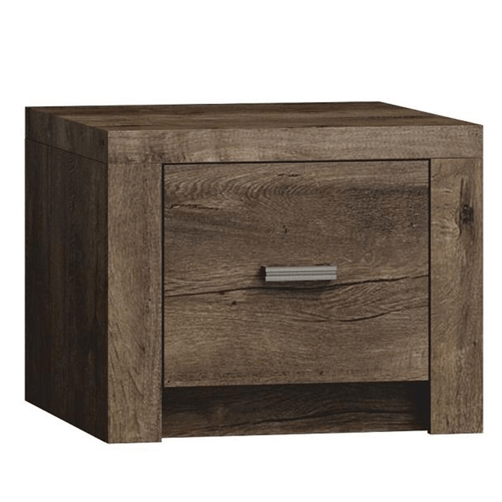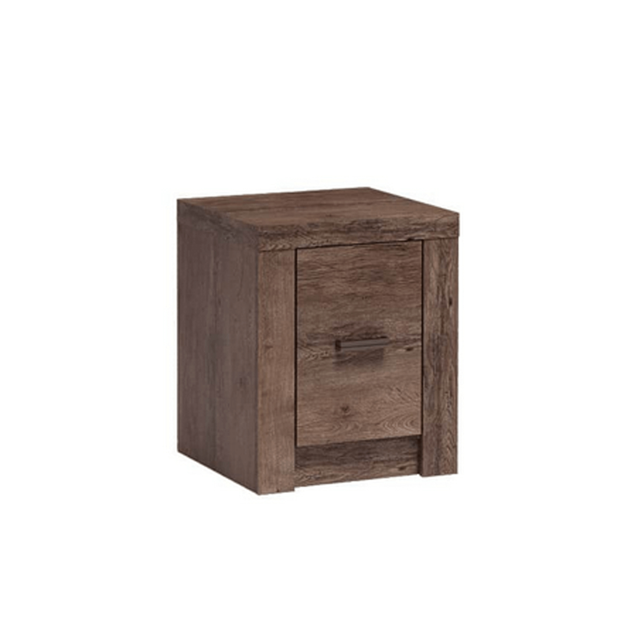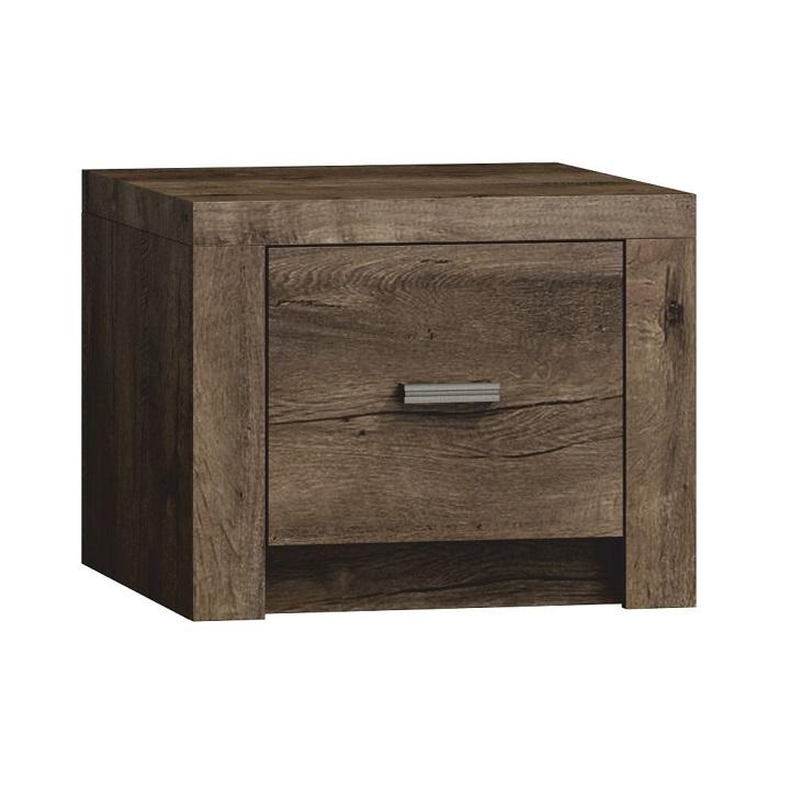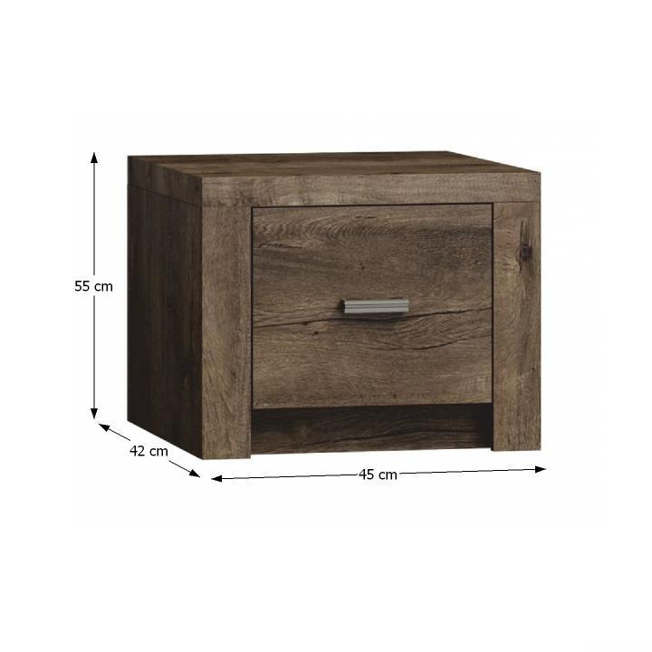 Noční stolek z luxusního sektorového nábytku. Korpus hrubý až 48 mm, Tloušťka materiálu zbývající části: 16 mm, úchytky kovové Materiál: DTD laminovaná / ABS hrany, barevné provedení: jasan tmavý, Rozměry ŠxHxV: 45x42x55 cm. Dodávané v demontu.