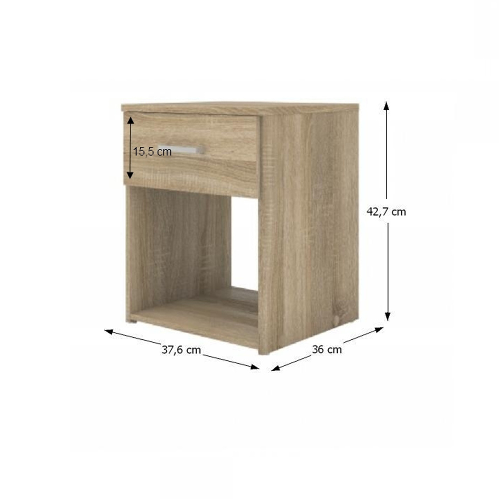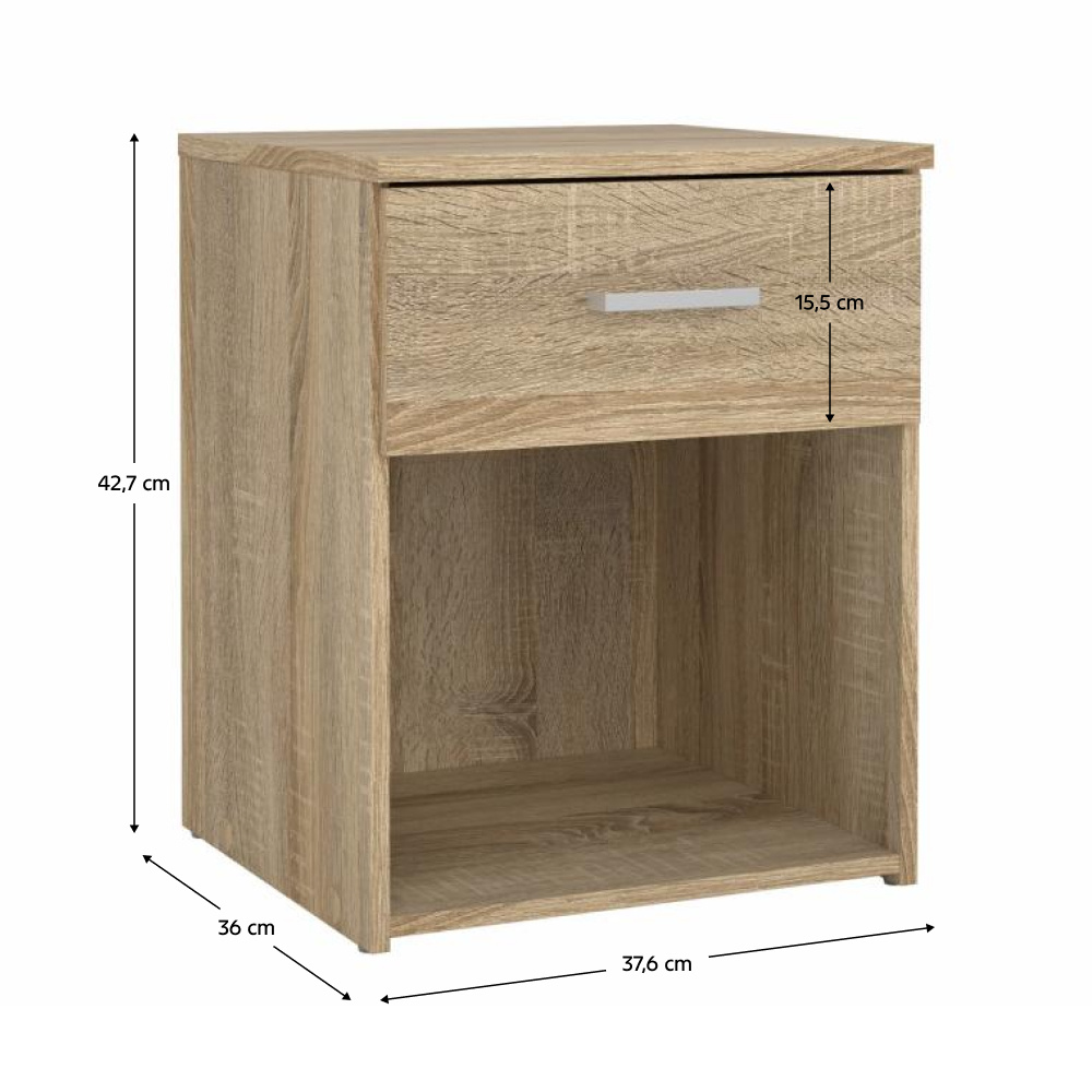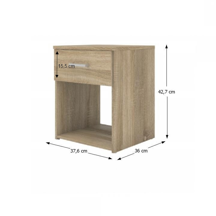 Noční stolek GARBO Materiál: DTD laminovaná Provedení: dub sonoma Rozměry komody (ŠxHxV): 37,6x36x42,7 cm Tloušťka materiálu korpus: 12 mm Tloušťka materiálu vrchní plát: 15 mm Dodávané v demontu