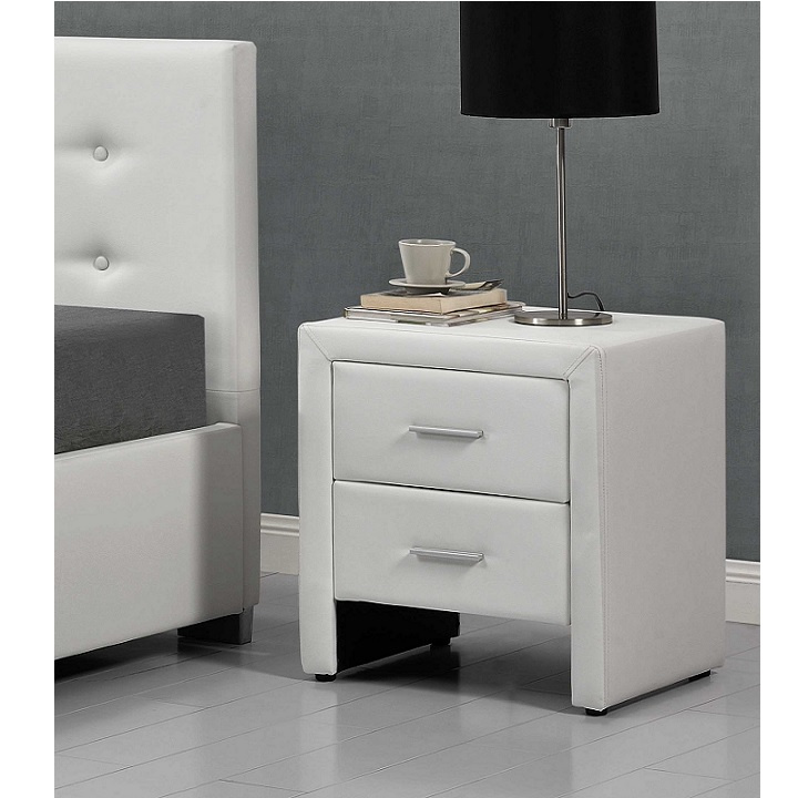 Noční stolek CASTEL v provedení bílá ekokůže. Rozměry (ŠxHxV) 48x42x55 cm