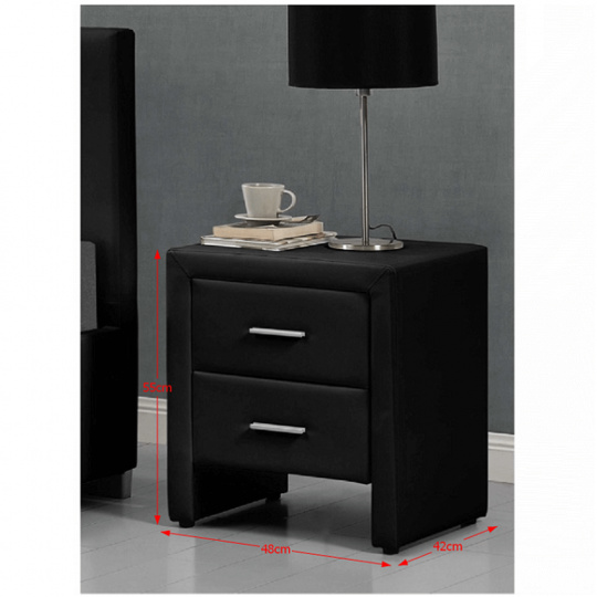 Noční stolek CASTEL v provedení černá ekokůže. Rozměry (ŠxHxV) 48x42x55 cm