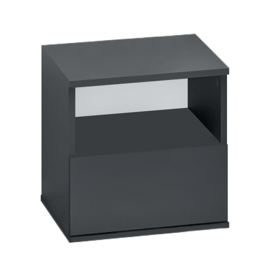 Materiál: laminovaná DTD Barva: grafit Rozměry (ŠxHxV): 40x40x40 cm Tloušťka laminované DTD: 1,6 cm Šuplík Výška šuplíku: 19 cm Nosnost šuplíku: 5 kg Otevřená odkládací plocha Výška otevřené odkládací plochy: 17,6 cm Plastové nožičky-kluzáky Nosnost: 10 kg Bez úchytek Moderní design Kvalitní slovenský výrobek Dodáváno v demontu