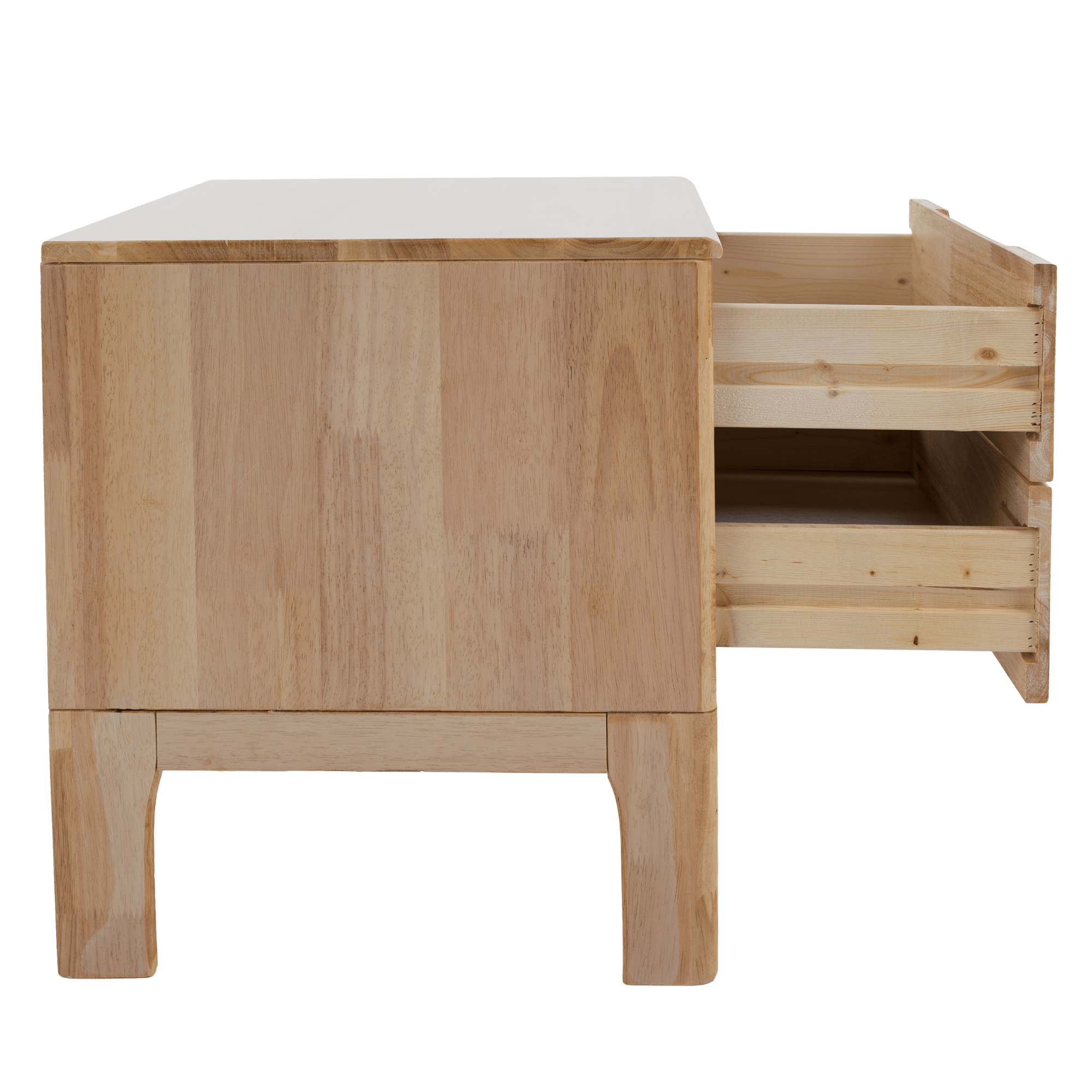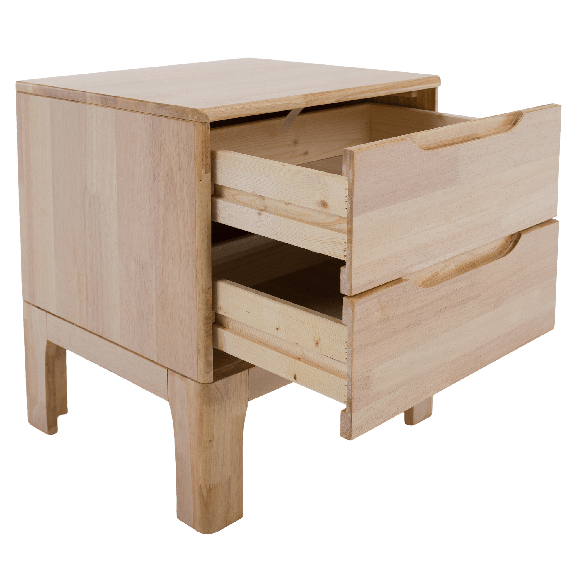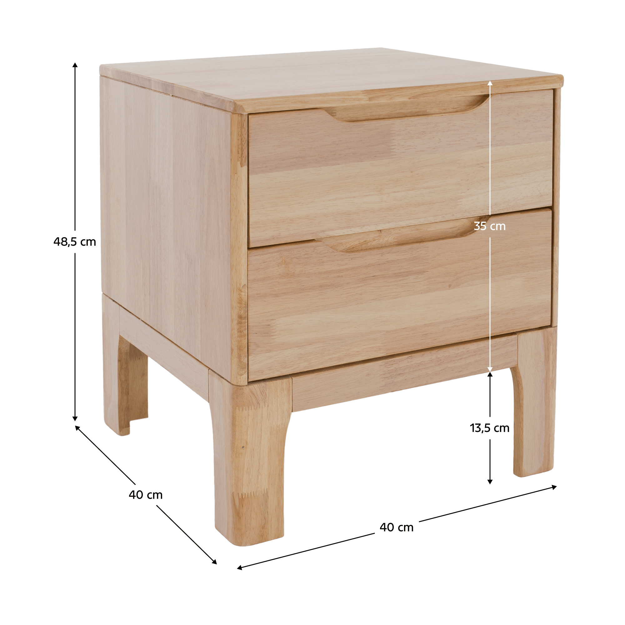 Materiál: kaučukové dřevo/borové dřevo Barva: přírodní Rozměry (ŠxHxV): 40x40x48,5 cm Výška stolku: 35 cm Dva šuplíky Na nožičkách Materiál nožiček: kaučuk Barva nožiček: přírodní Výška nožiček: 13,5 cm Zafrézované úchytky Nosnost: 4 kg Dodáváno v monte