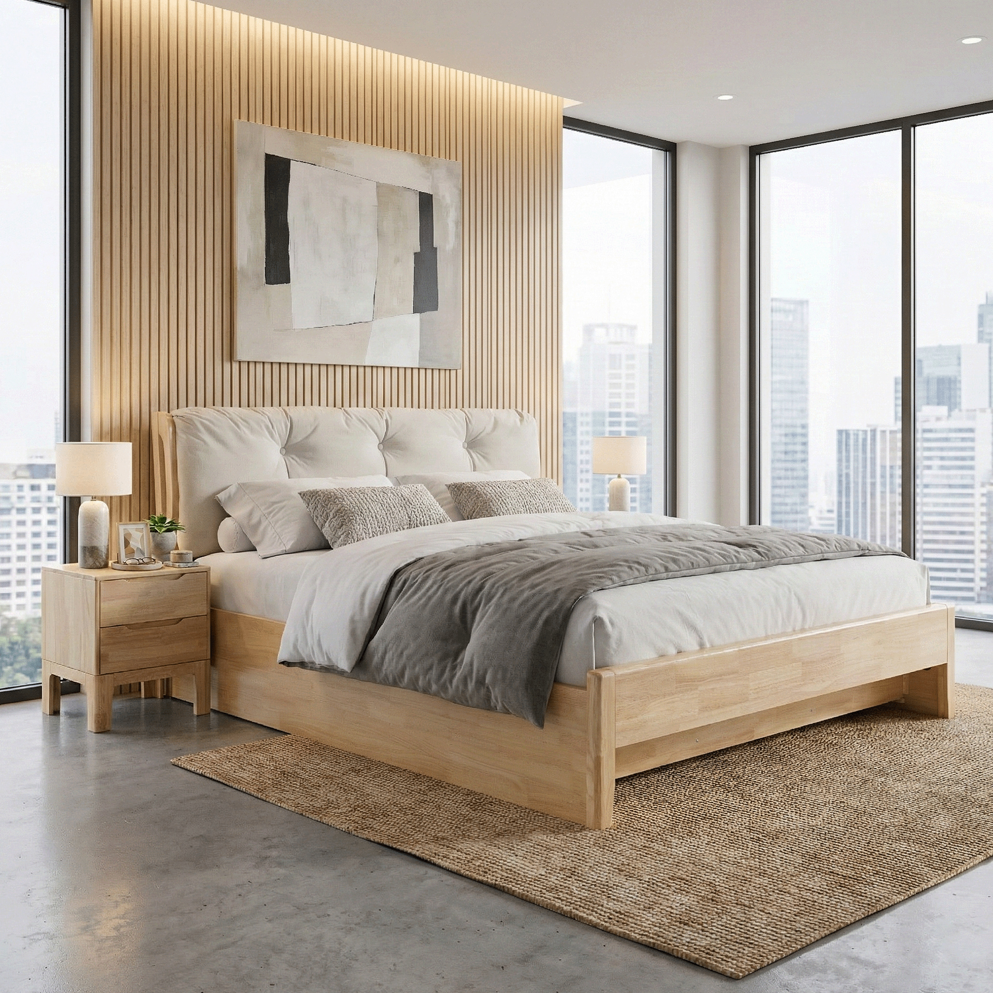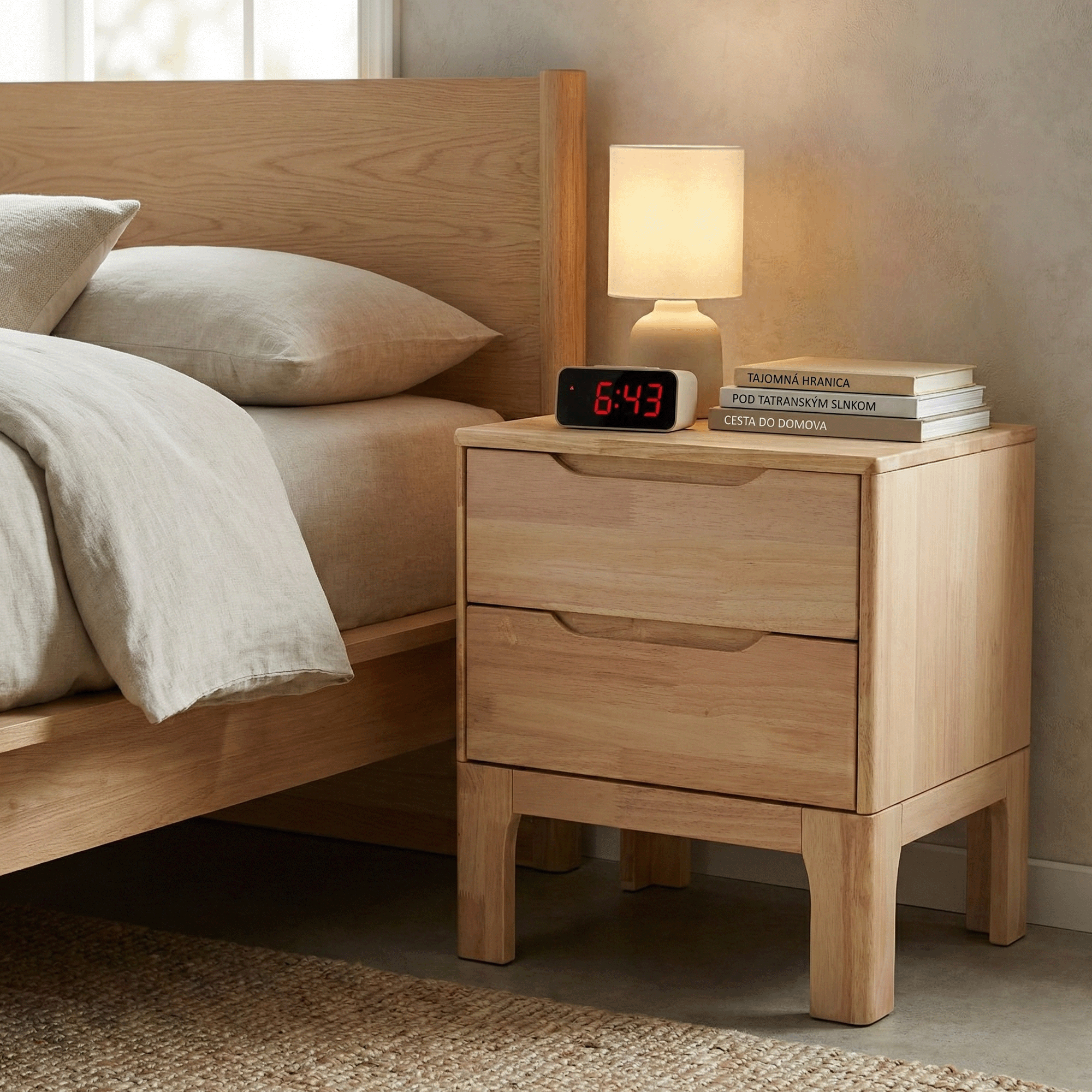 Noční stolek, masivní dřevo, přírodní, FERB