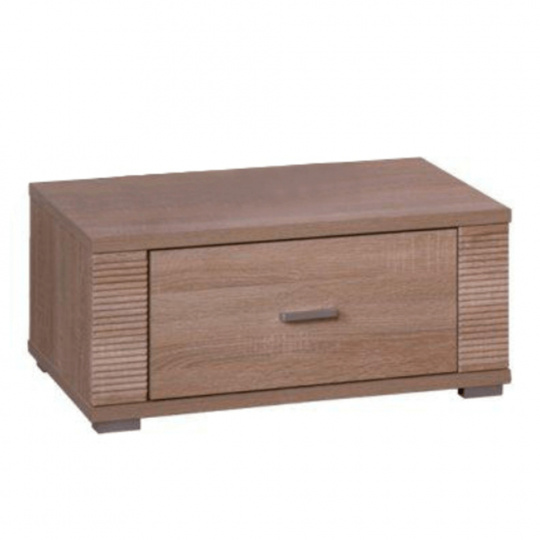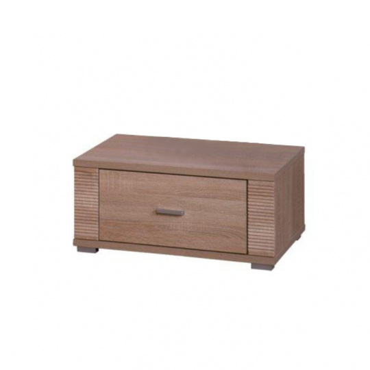 Noční stolek s jednou zásuvkou typ 21, vhodný na zařízení obývacích pokojů, ložnic i pracoven, materiál: DTD laminovaná. Hrany jednotlivých komponentů jsou ukončeny vroubkovanou lištou. Barevné provedení: dub sonoma. Rozměry (ŠxVxH): 62,8x29x39 cm. Tloušťka materiálu korpus: 16 mm Tloušťka materiálu vrchní desky: 22 mm Tloušťka materiálu spodní desky: 22 mm  Dodávána v demontu, pouze na objednávku s dodací lhůtou 5-7 týdnů.