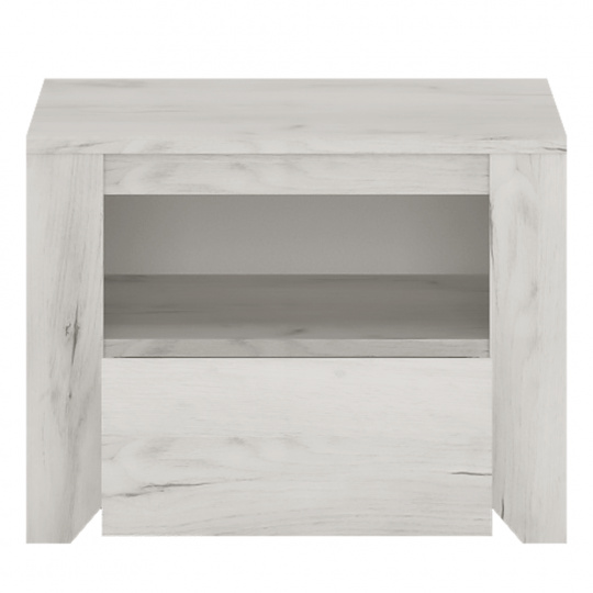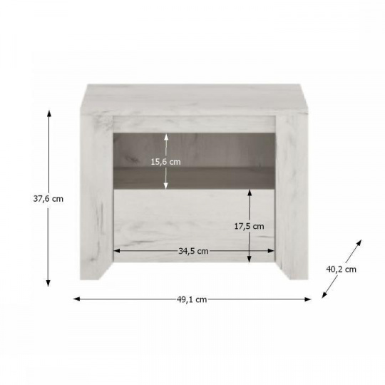 Noční stolek Typ 95 ze sektorové sestavy ANGEL Materiál: laminovaná DTD Barva: bílá craft Rozměry (ŠxHxV): 49,1x40,2x37,6 cm Tloušťka materiálu: 16-28 mm Výška spodního prostoru od podlahy: 2,5 cm Dodávané v demontu