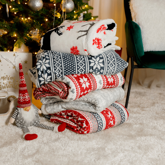 Oboustranná beránková deka, zimní motiv, 150x200, RENIFE