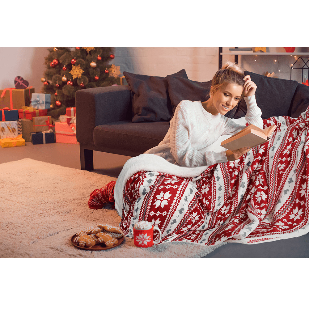 Oboustranná beránková deka, zimní vzor, 150x200, SAMANTE