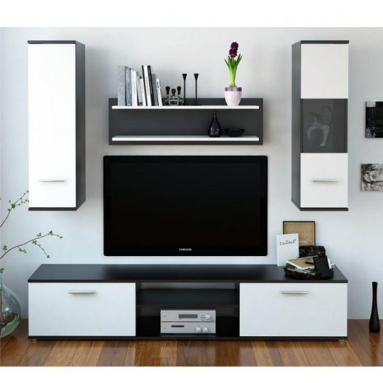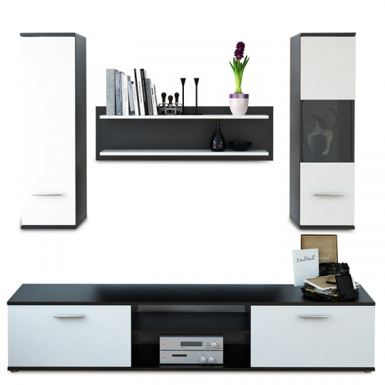 Obývací stěna, černá / bílá, WAW