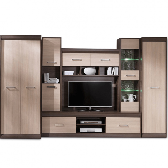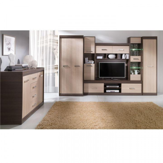 Obývací stěna, dub tmavý / dub jasný, KORINA