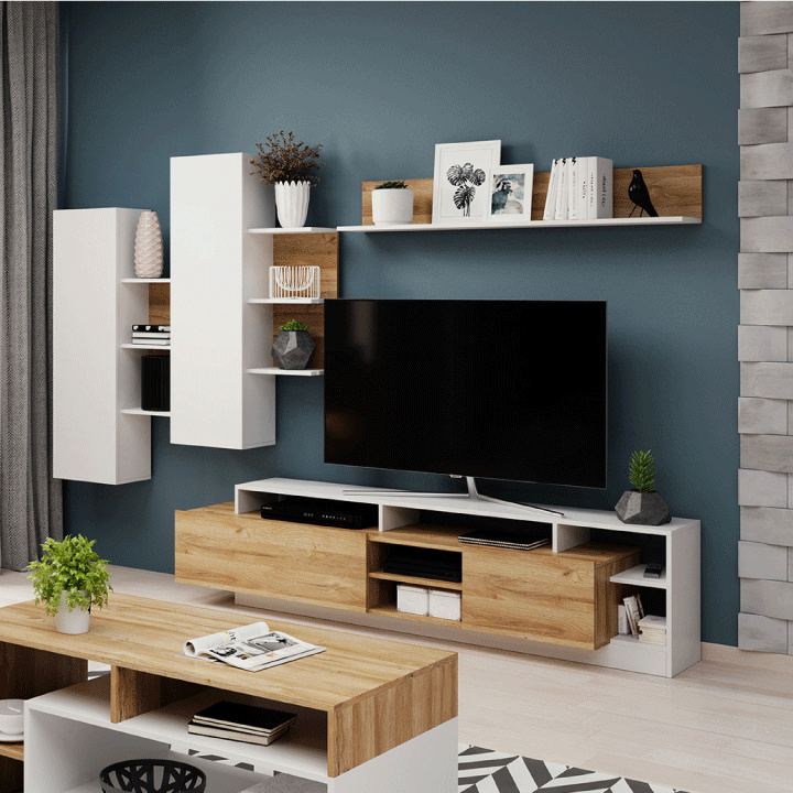 Obývací stěna, ALICANTE Materiál: DTD laminovaná Barva: dub grandson / bílá Rozměry obývací stěna (ŠxHxV): 260x30-40x171,5 cm Tloušťka materiálu: 16 mm Dodávané v demontu.
